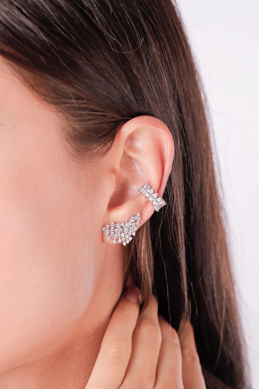 Brinco ear cuff modelo mapa em prata 925 e banho de ródio. Com micro cravação de zircônias cristal.
