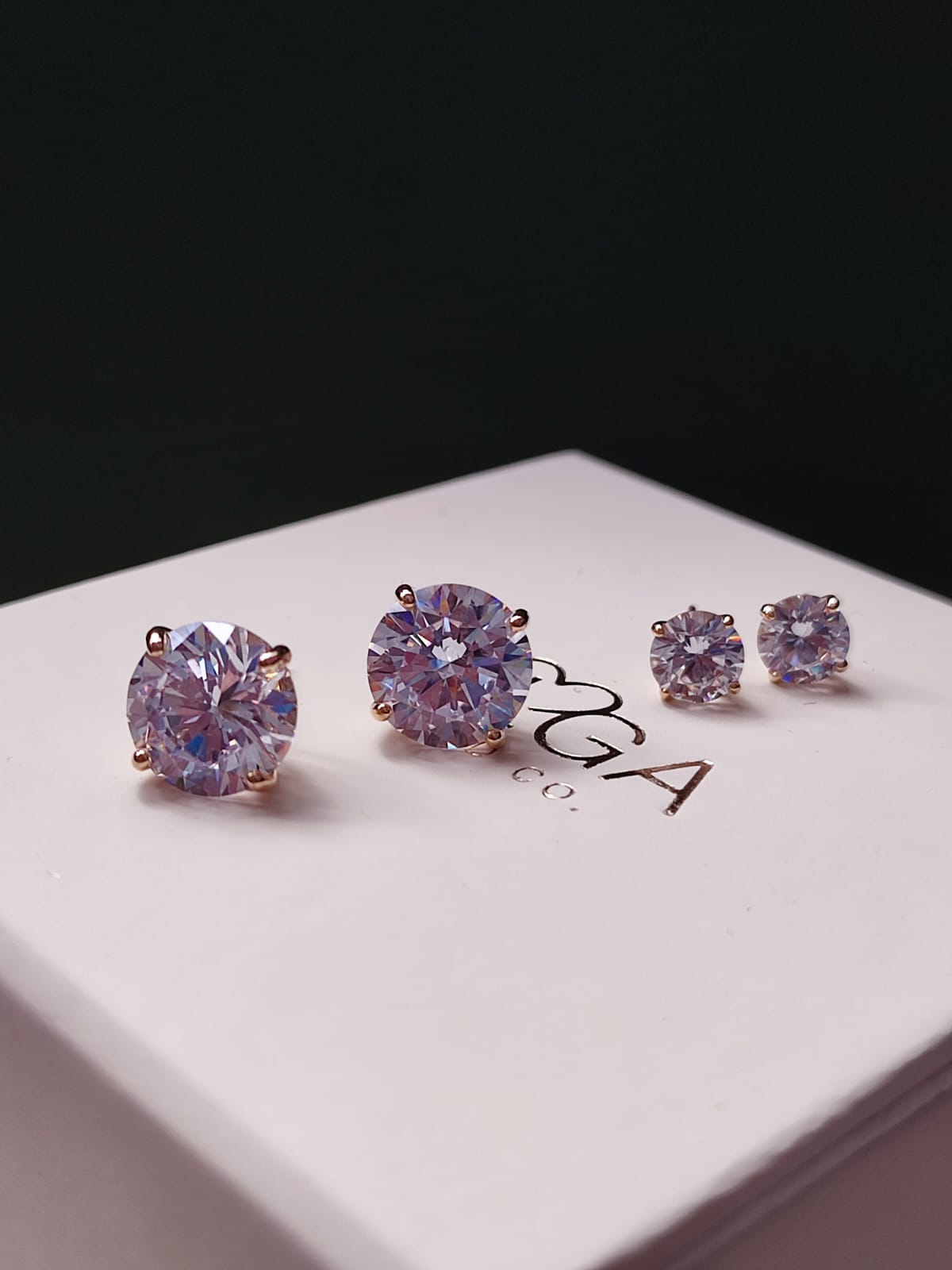 Brinco solitário em prata 925 e banho de ouro com 6mm. Zircônia cristal.