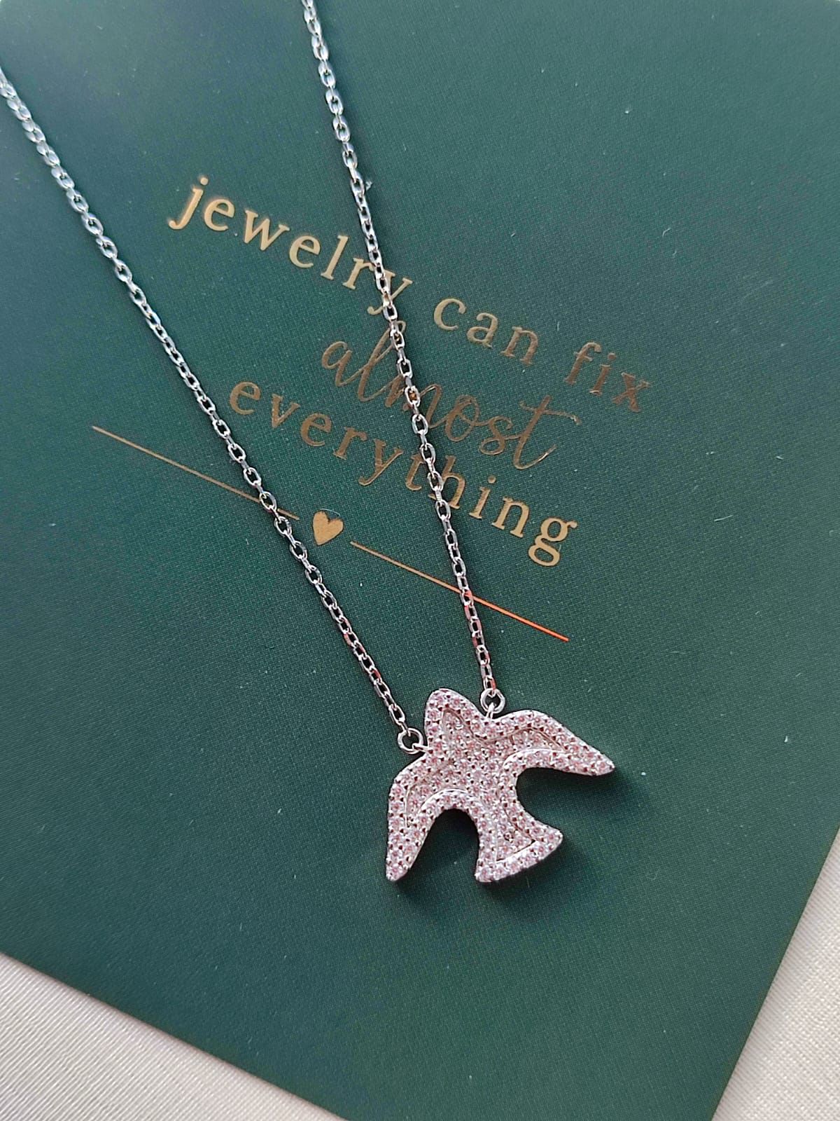 Colar em prata 925 e banho de ródio com Espírito Santo micro cravejado com zircônias cristal.