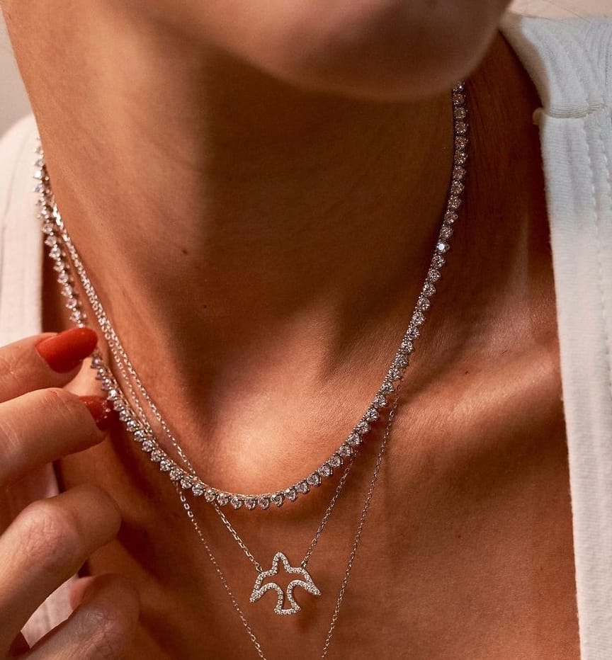 Colar em prata 925 com banho de ródio e Espírito Santo todo micro cravado com zircônias cristal.