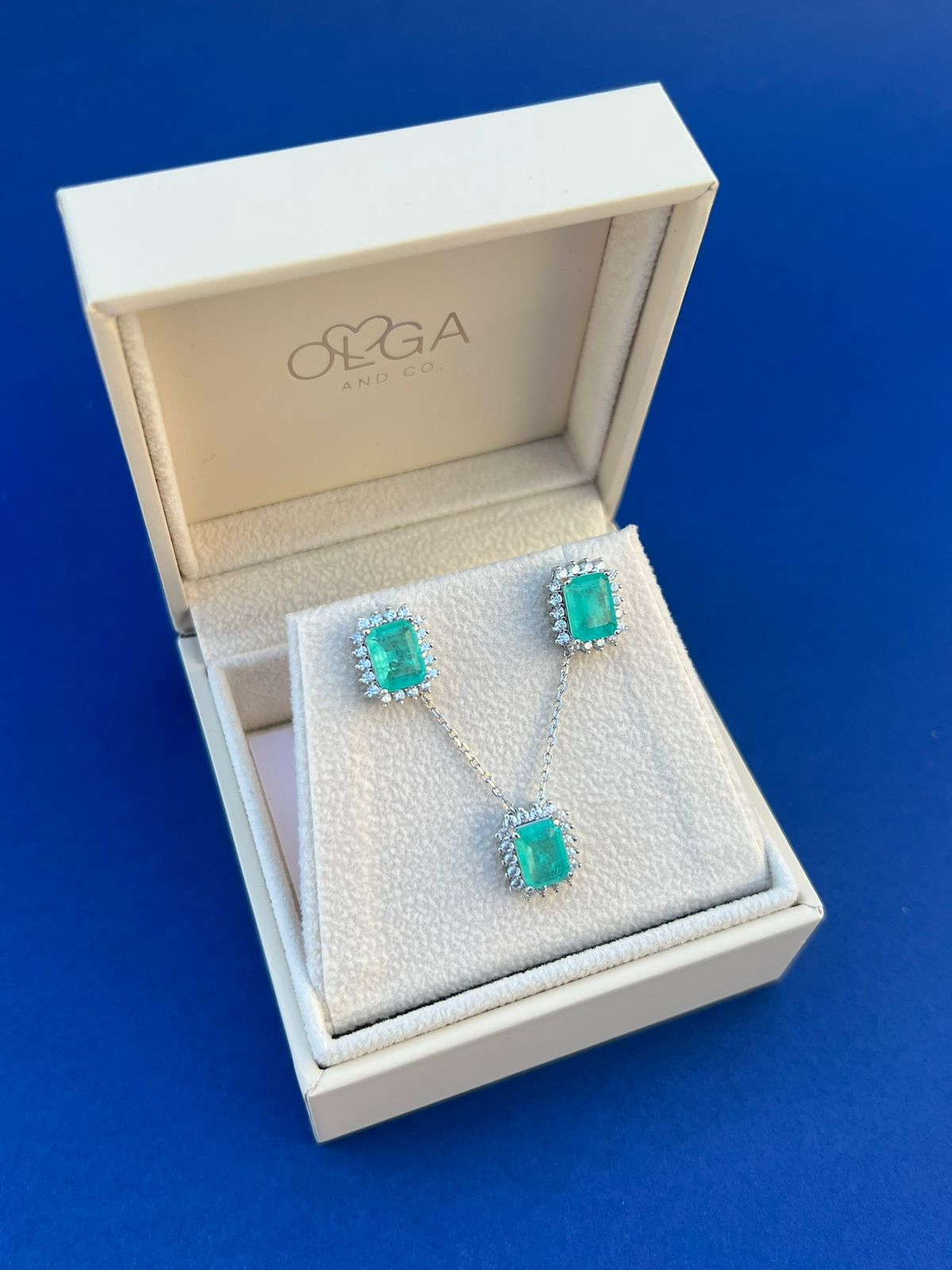 Colar em prata 925 e banho de ródio com zircônia retangular colombiana e em volta zircônias cristal.
