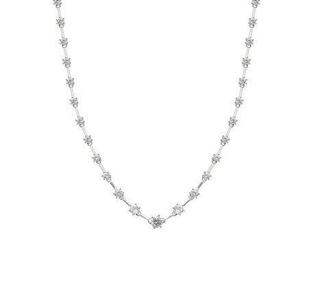Colar riviera em prata 925 e banho de ródio modelo fio faca com zircônias na cor cristal.