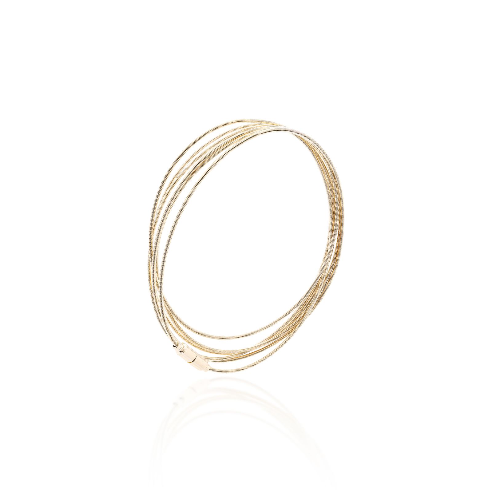 Pulseira corda violão com banho de ouro 18k e fecho ímã.