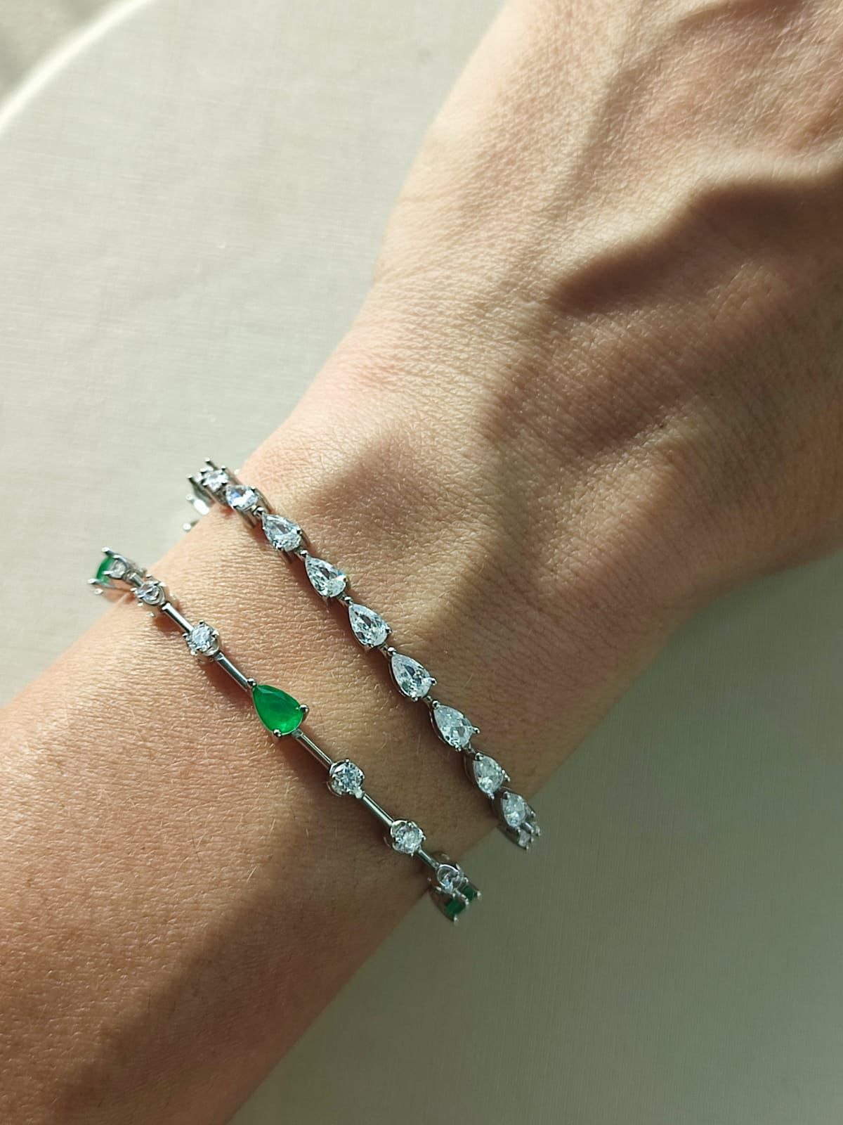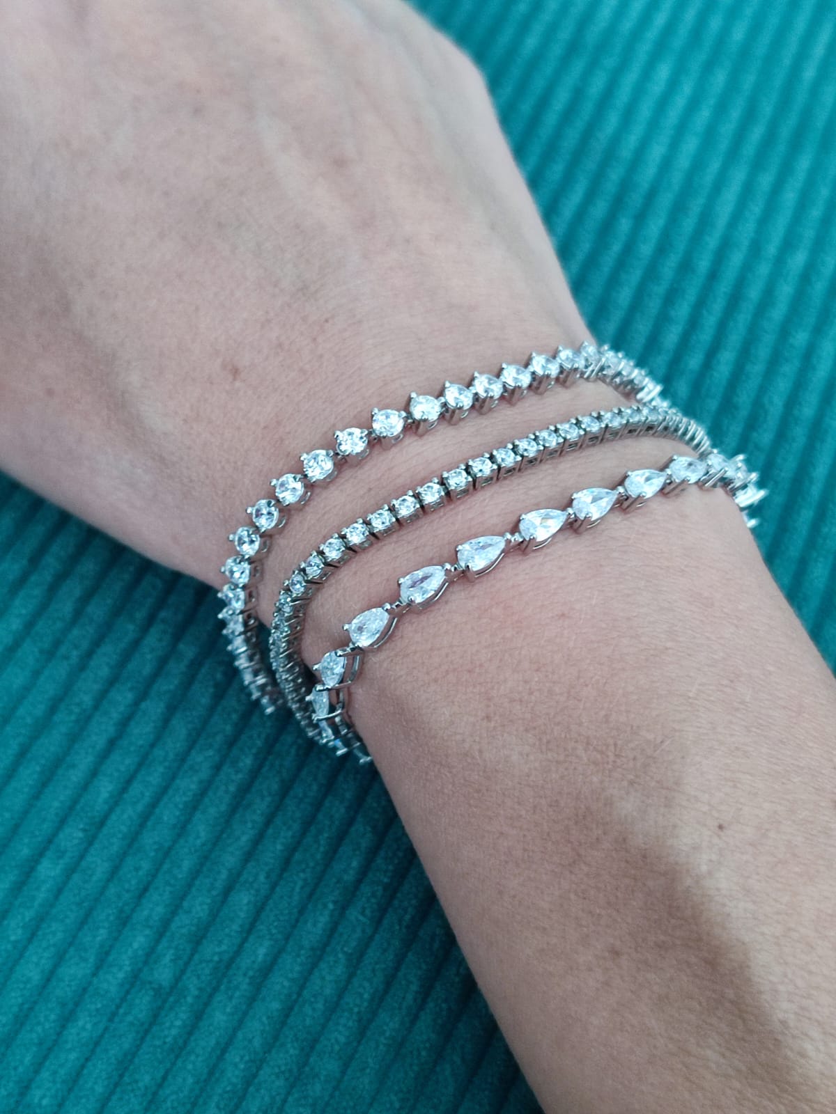 Pulseira riviera em prata 925 e banho de ródio com gotinhas cristal.